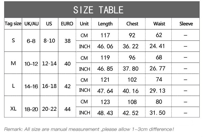 NOTE: 1. About size chart.Please strictly follow the size chart to select the size. Do not select directly according to your habits. 2.Still not sure about size We’d love to advise based on your measurements of bust,waist and hip.